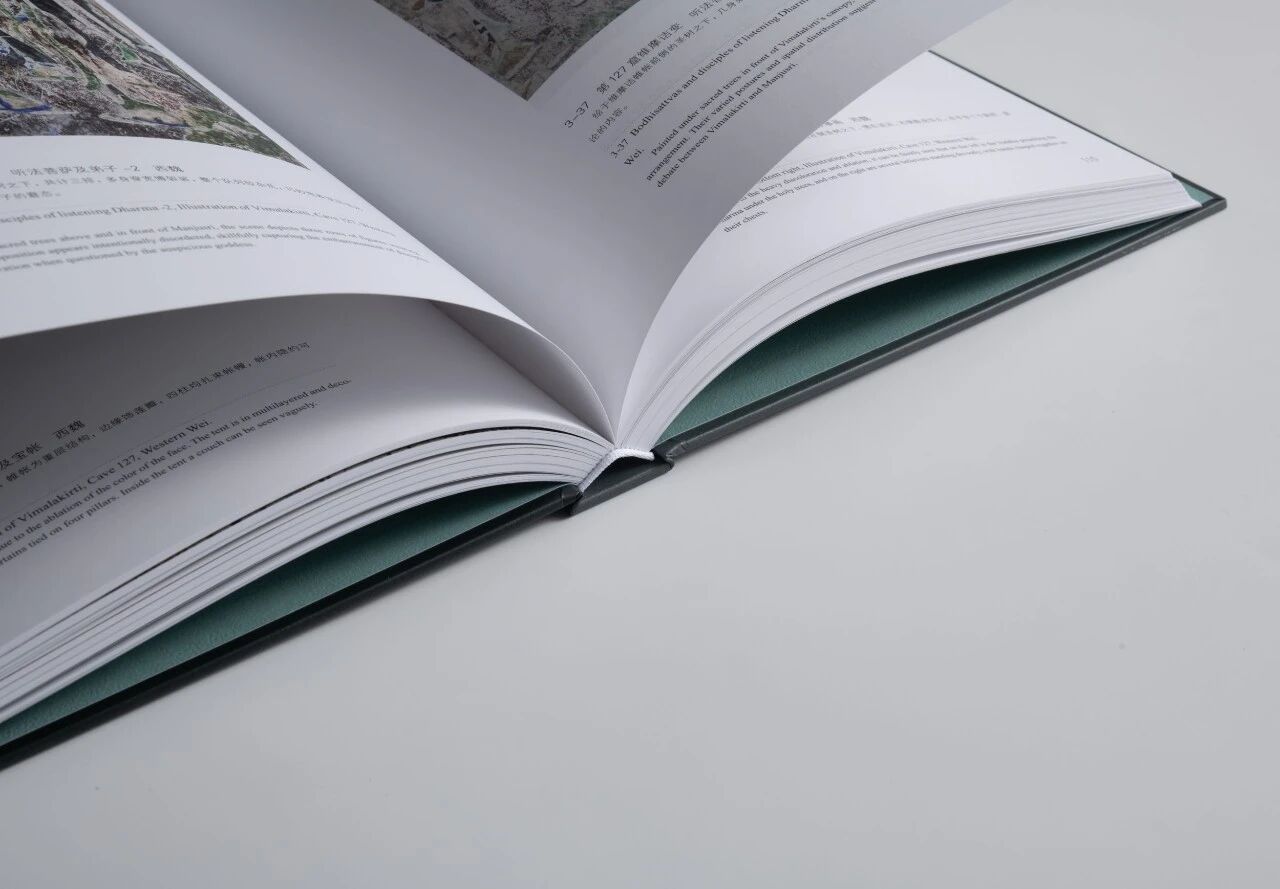 16开尺寸兼顾翻阅舒适度与图像呈现力,方脊锁线工艺让全书可完全摊平,每一次翻阅都无需刻意按压,让工艺真正服务于内容。内文选用150克韵彩高白纸,色彩还原度拉满——壁画的朱砂红、石青蓝,泥塑的赭石色,都能精准复刻,尽显文物本真色泽;中英双语不对称网格版式,图文间距疏密有致,让学术内容也能读出通透质感。