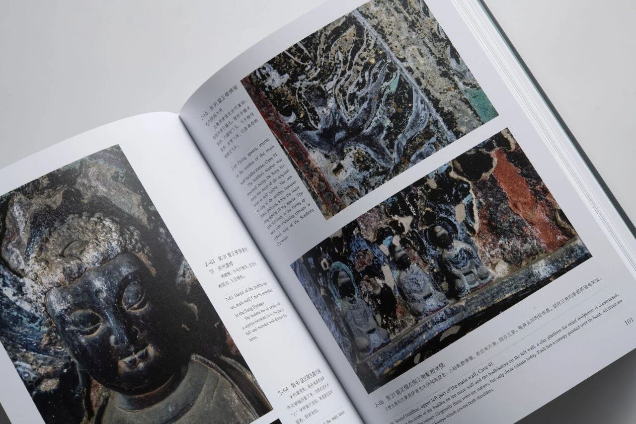 16开尺寸兼顾翻阅舒适度与图像呈现力,方脊锁线工艺让全书可完全摊平,每一次翻阅都无需刻意按压,让工艺真正服务于内容。内文选用150克韵彩高白纸,色彩还原度拉满——壁画的朱砂红、石青蓝,泥塑的赭石色,都能精准复刻,尽显文物本真色泽;中英双语不对称网格版式,图文间距疏密有致,让学术内容也能读出通透质感。